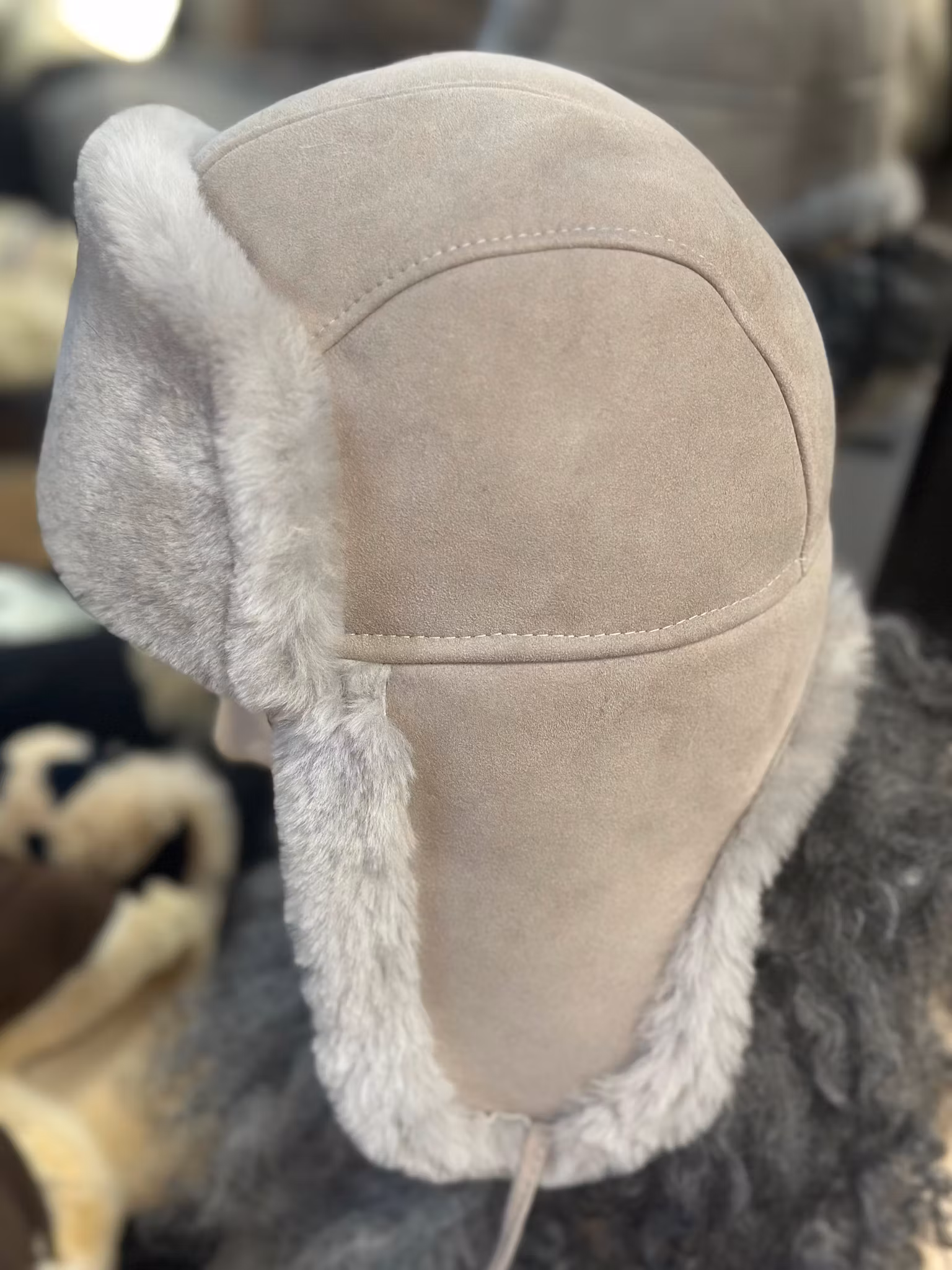En varm och skön fårskinnsmössa med öronlappar.