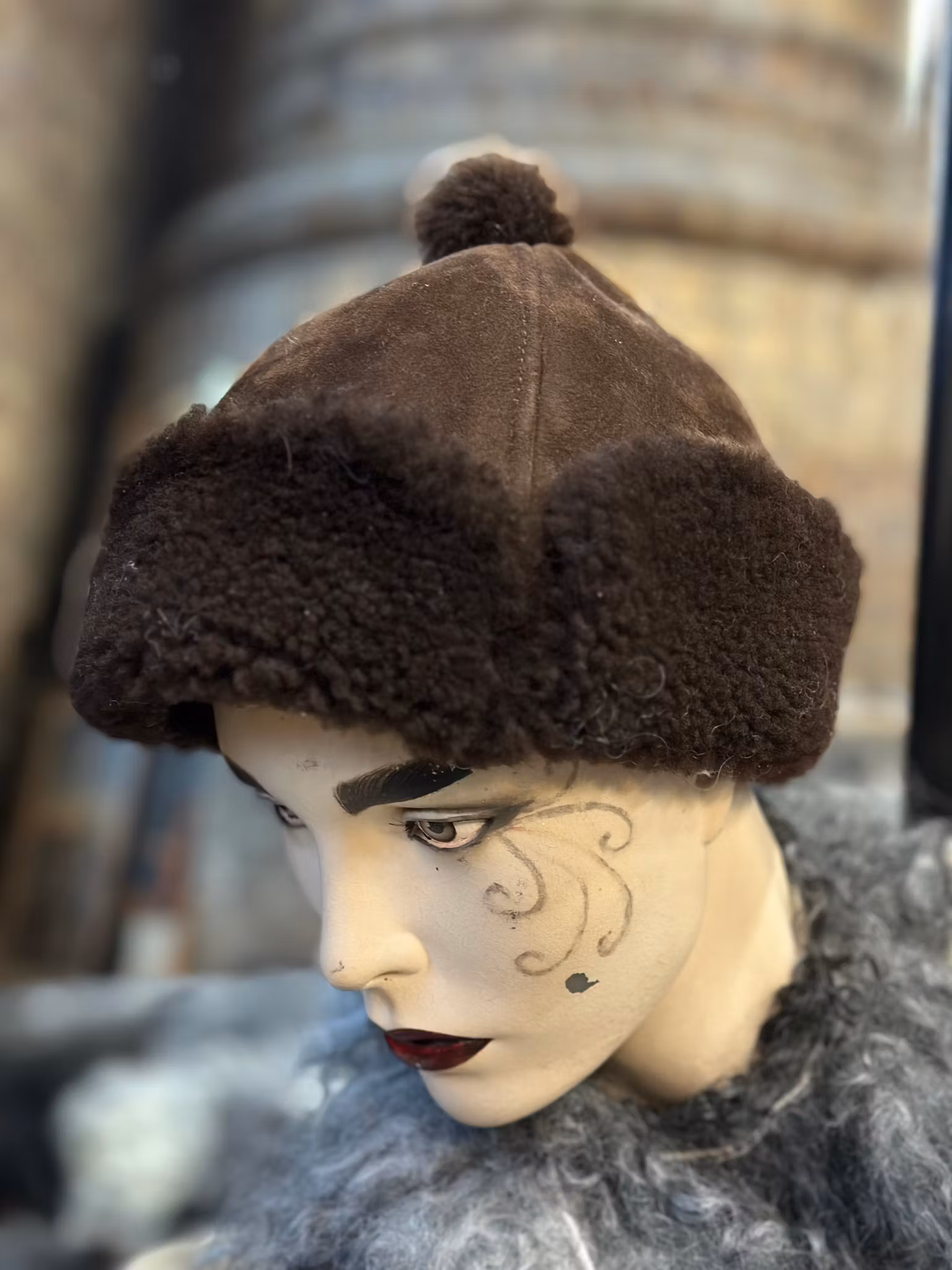 Fårskinnsmössa -unisex "Fiskemössa " mörkbrun