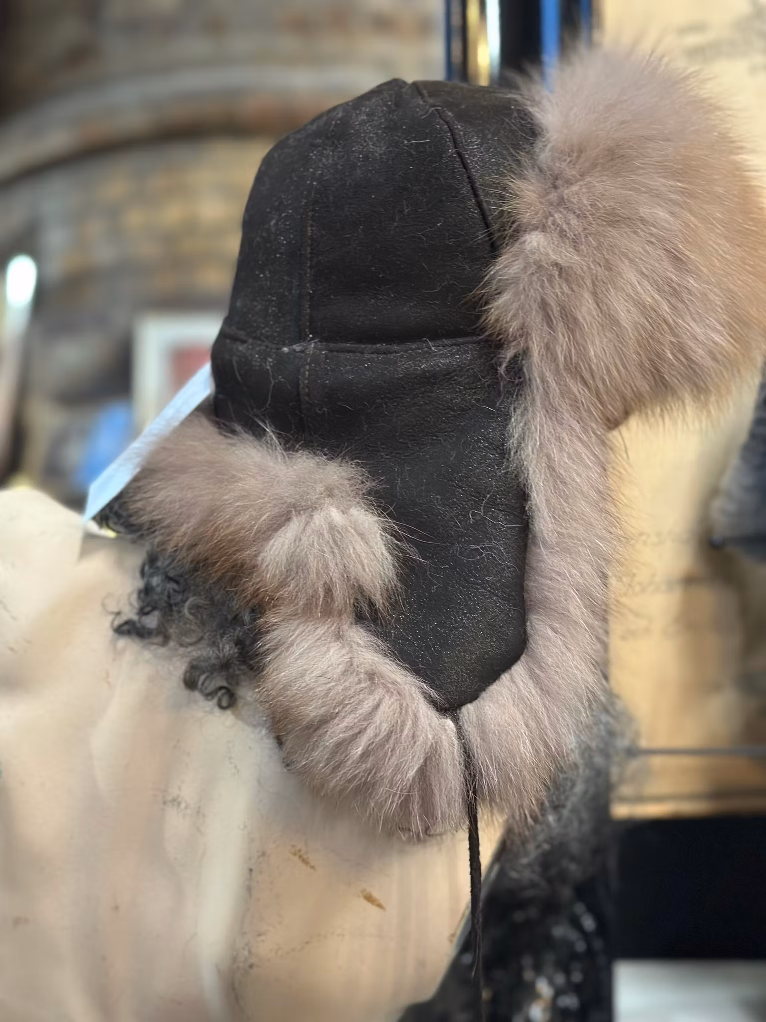 Fårskinnsmössa med öronlappar
