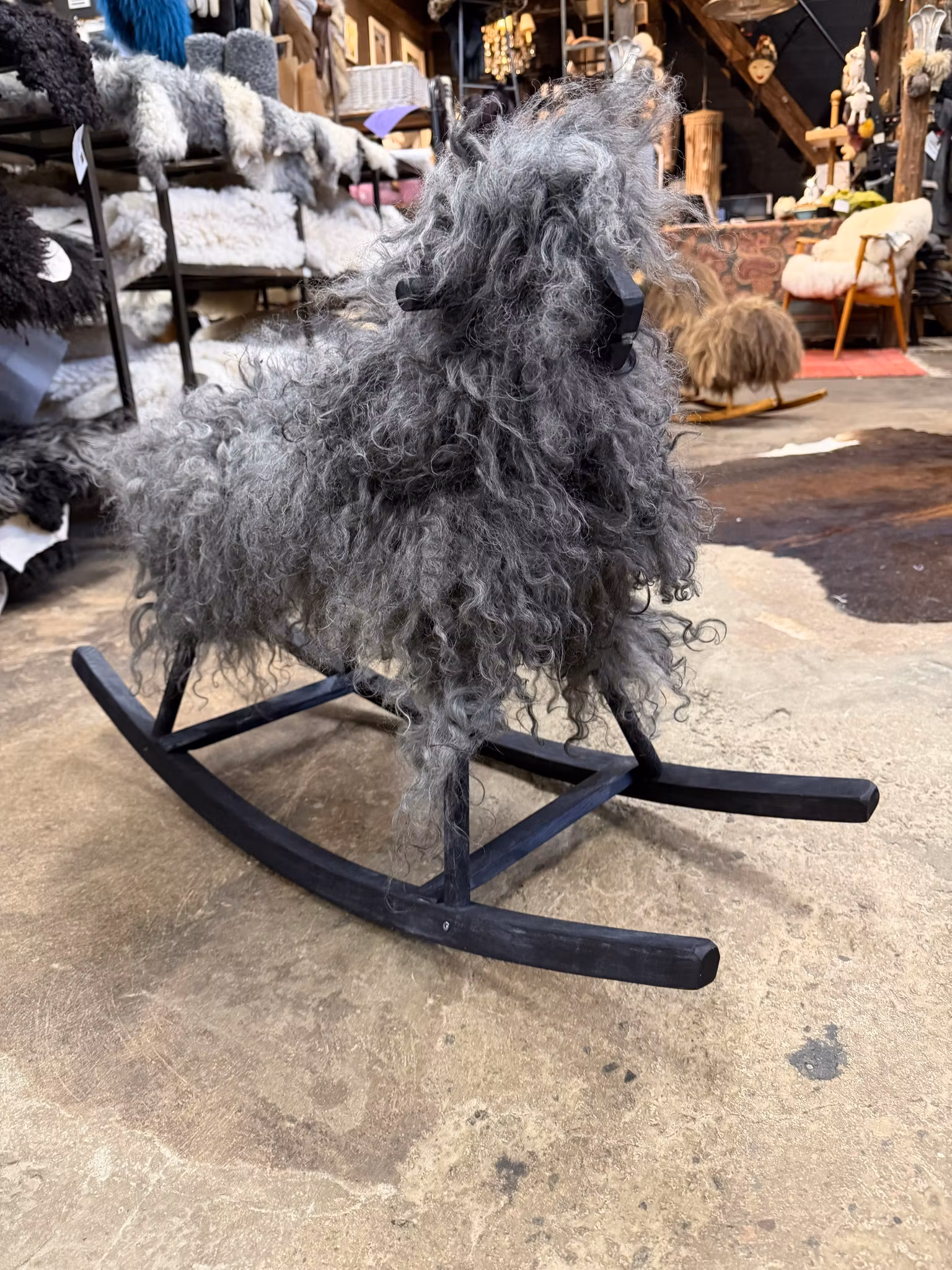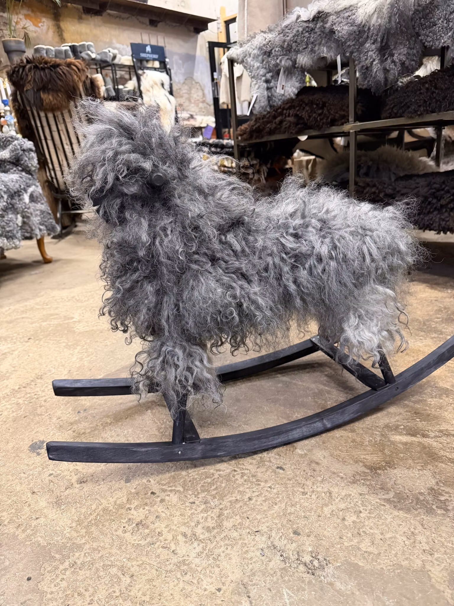 Klädd i äkta fårskinn.