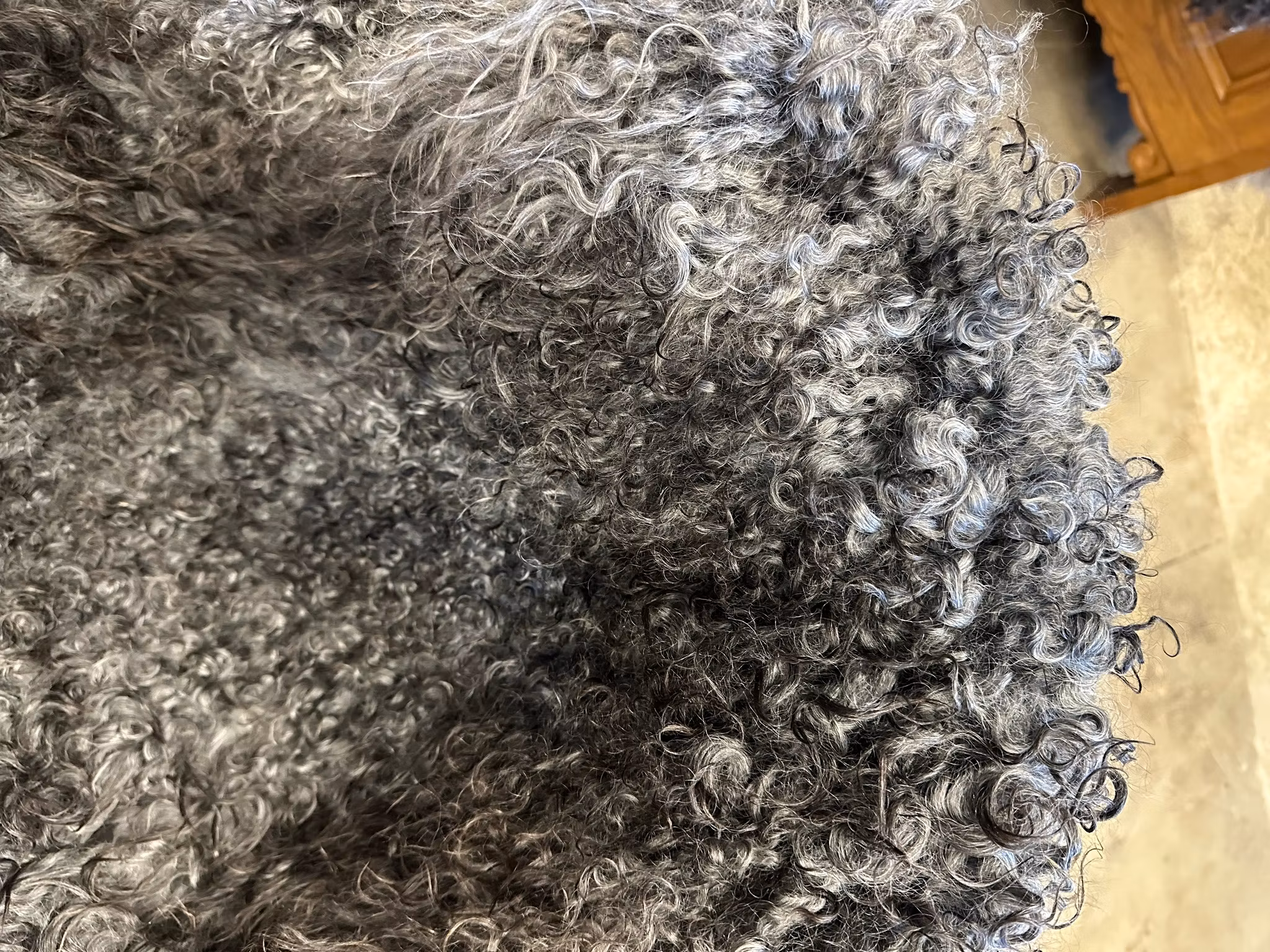 Mycket fint gotländskt fårskinn i naturliga grå nyanser.
