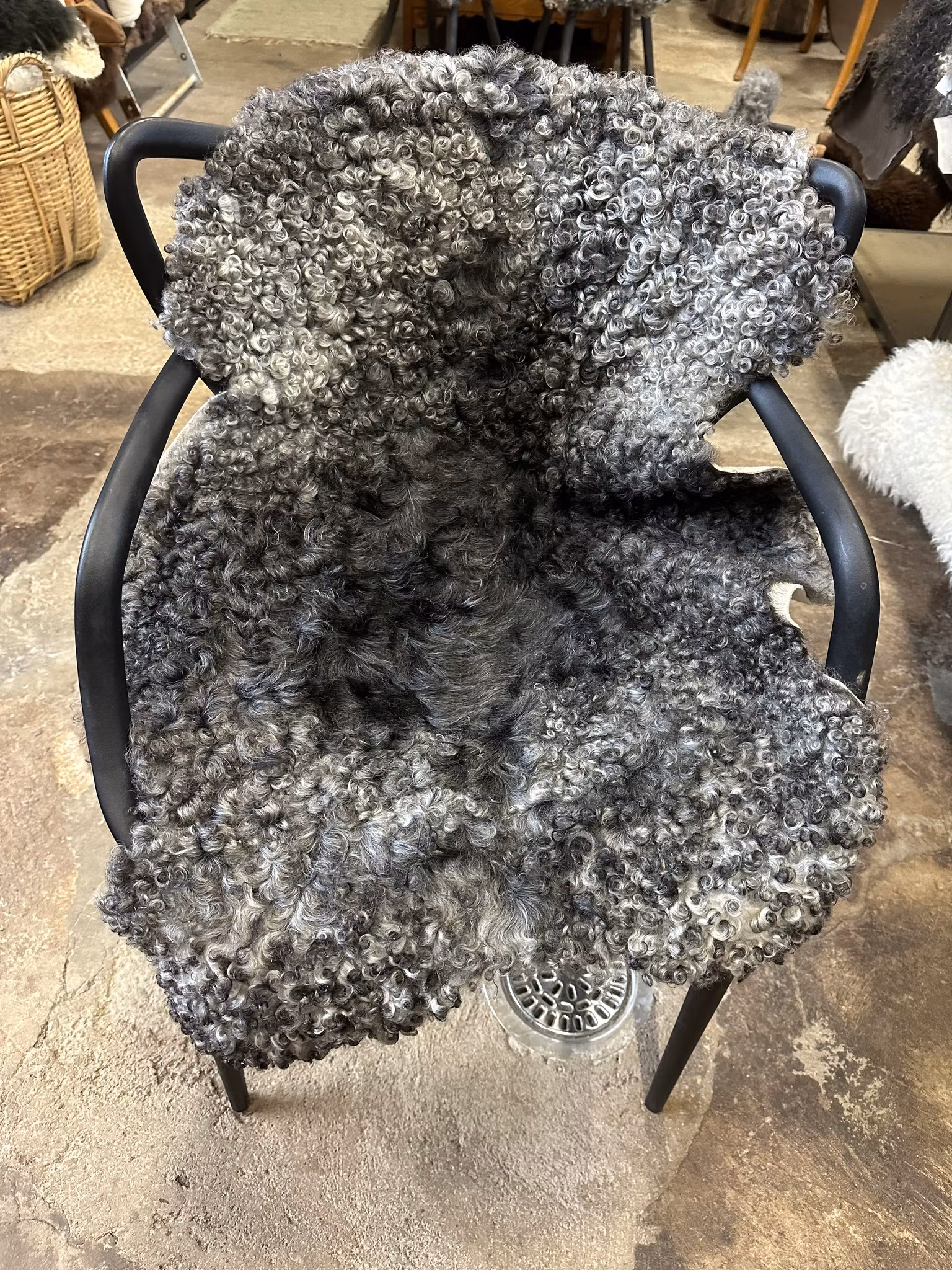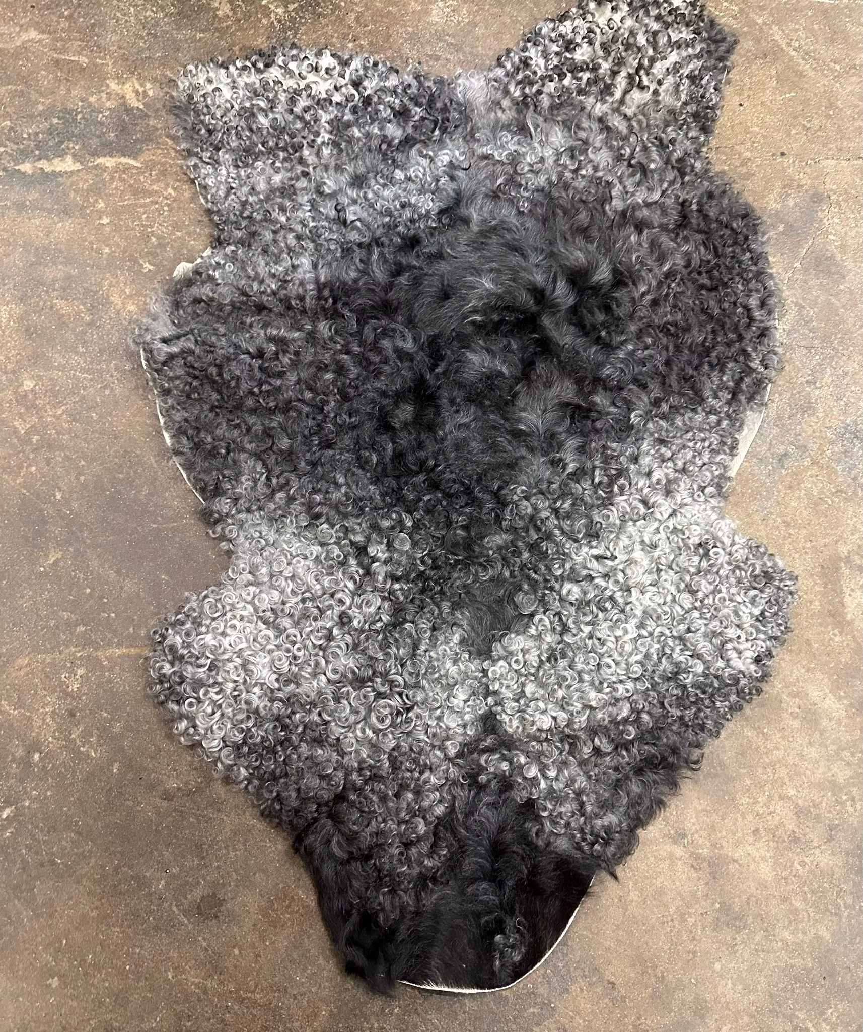 Mycket fint gotländskt fårskinn i naturliga grå nyanser.