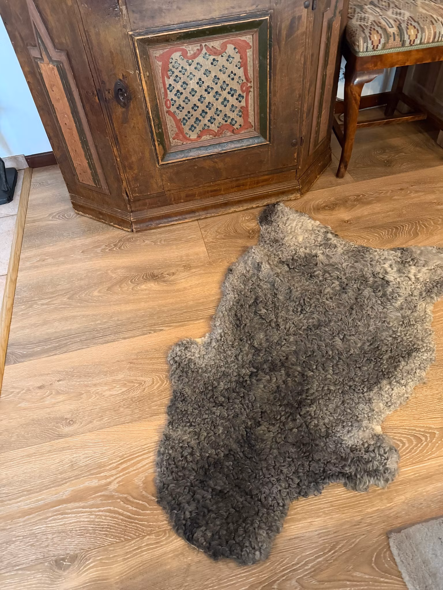 Gotländskt Fårskinn i Naturliga Grå  Nyanser - Unikt och Mysigt för Hemmet