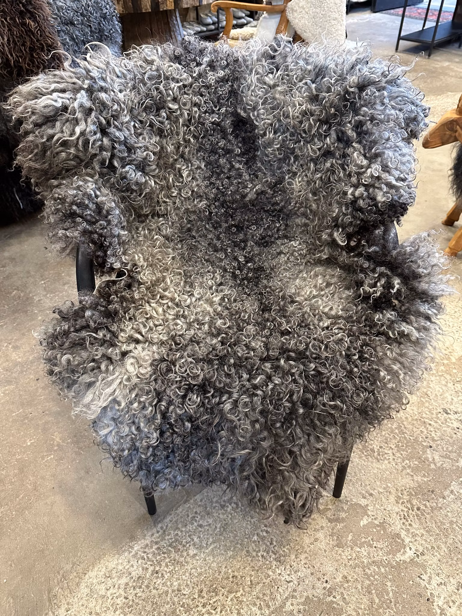 Mycket fint gotländskt fårskinn i naturliga grå nyanser.