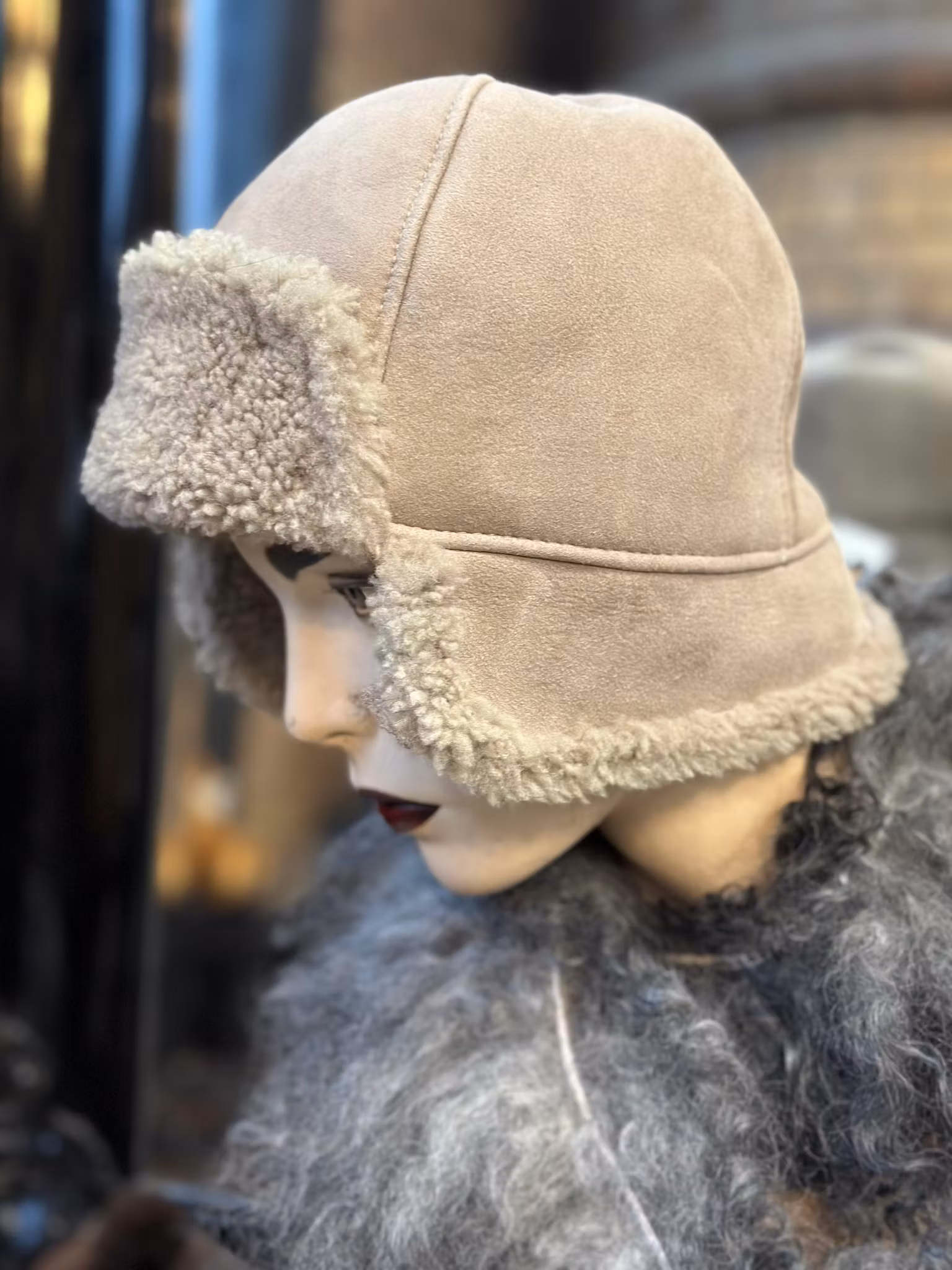 Fårskinnsmössa -unisex "Fiskemössa " mocca
