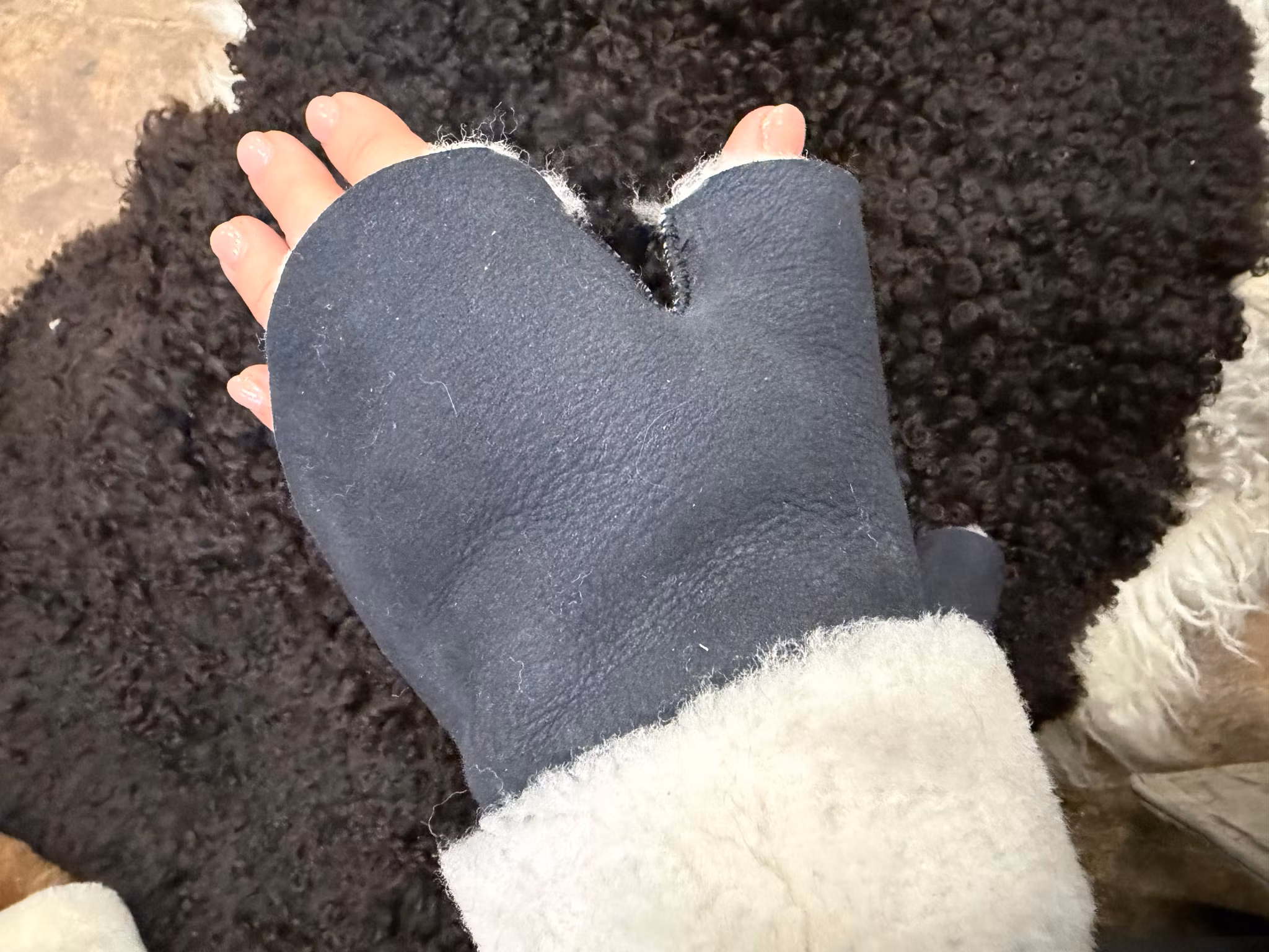 För längre promenader, exempelvis med hund, rekommenderar jag dock hela fårskinnsvantar för extra värme.
