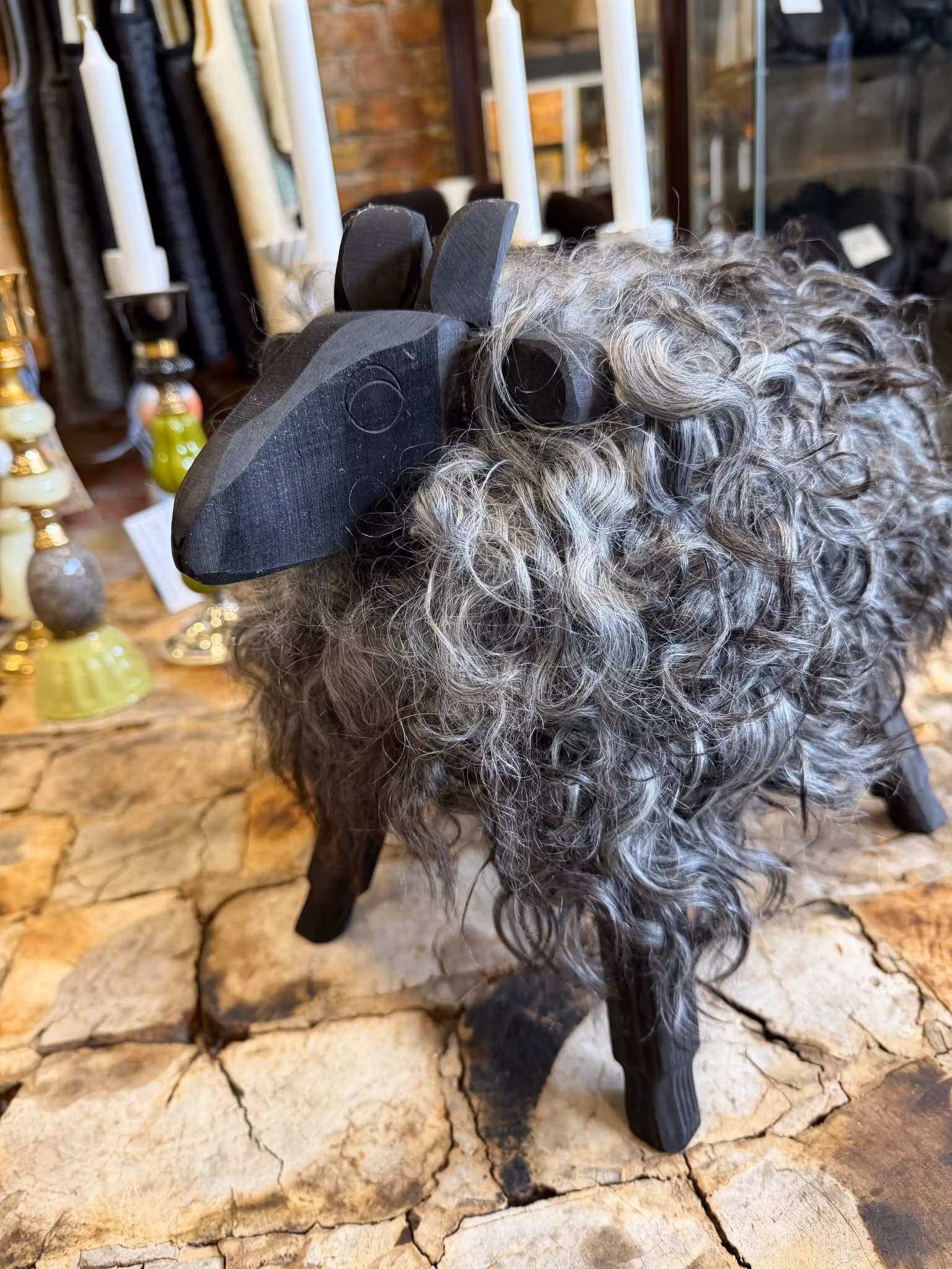Minifåret som är klädd i äkta fårskinn är tillverkat på "Spritan " i Helsingborg av Helena