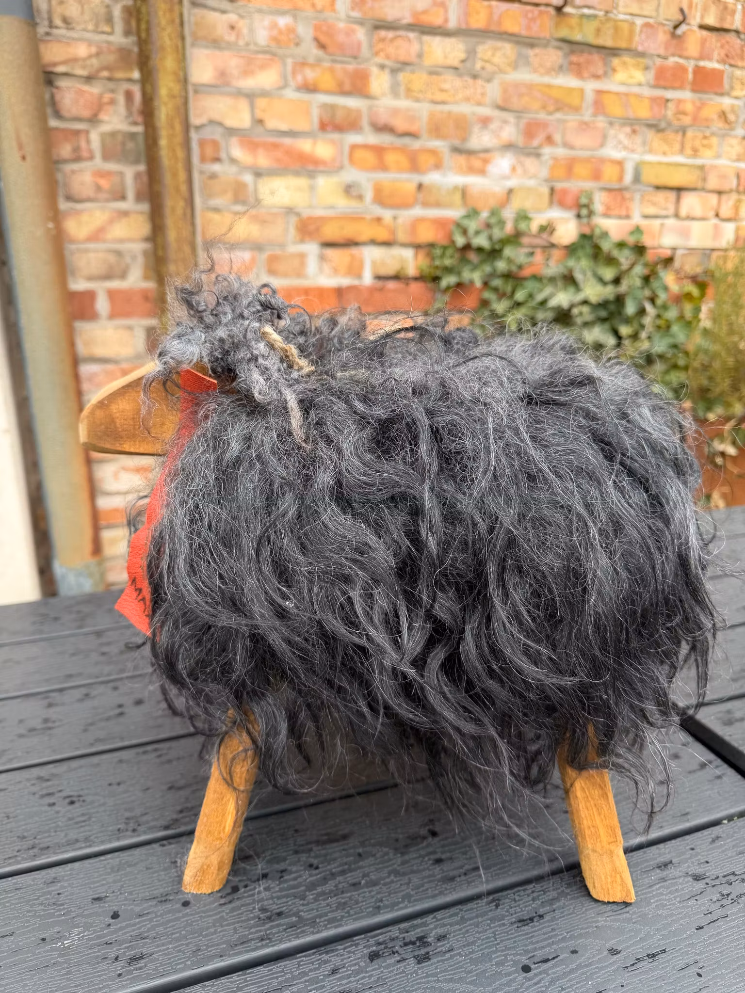 Minifåret som är klädd i äkta fårskinn är tillverkat på "Spritan " i Helsingborg av Helena