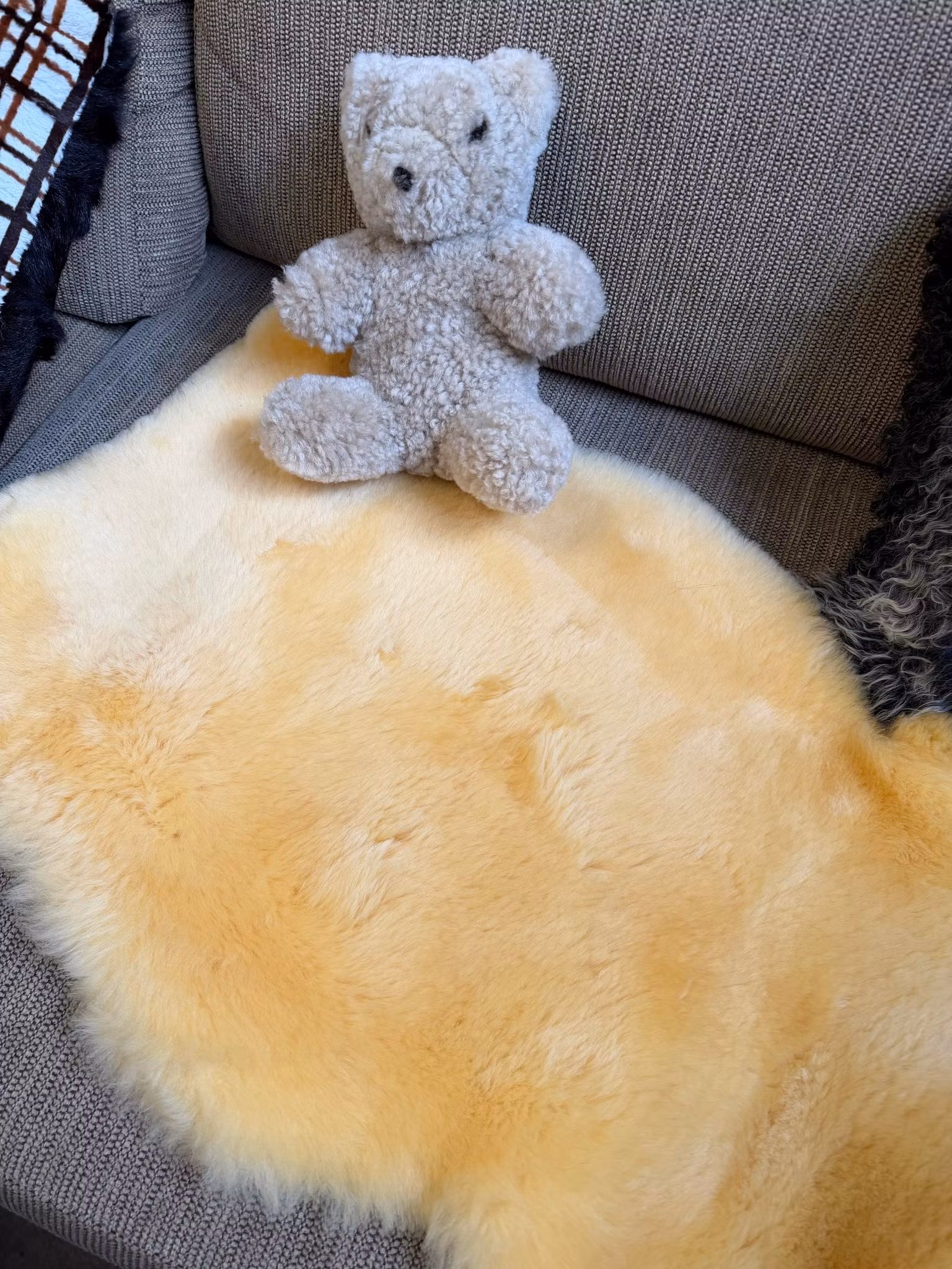 Den här nallen i fårskinn är en perfekt present till barn, till exempel som doppresent eller 1-årspresent.